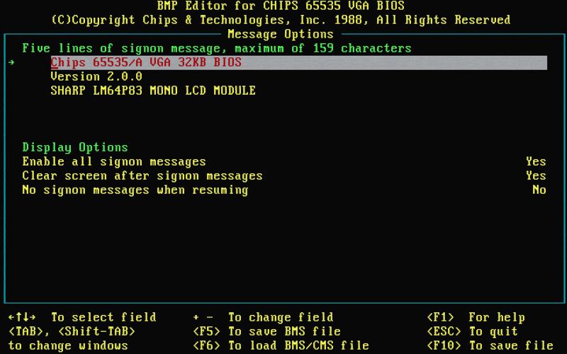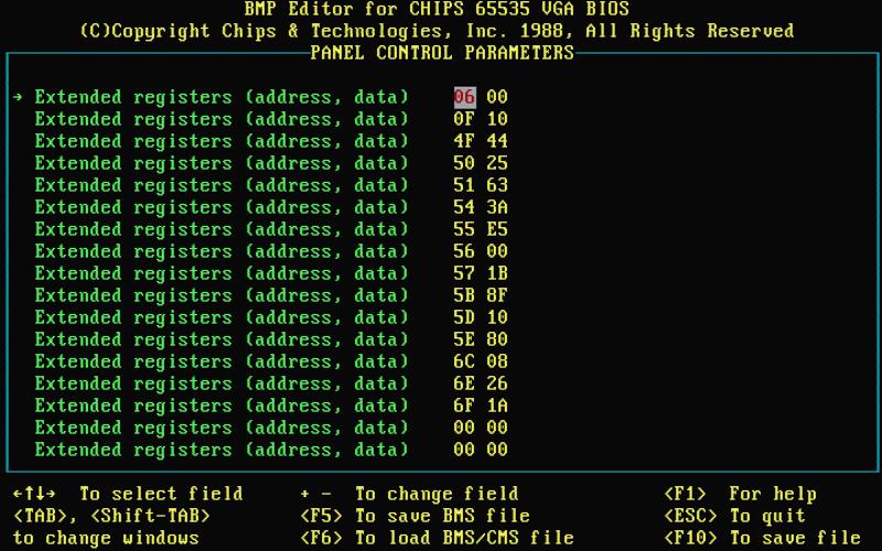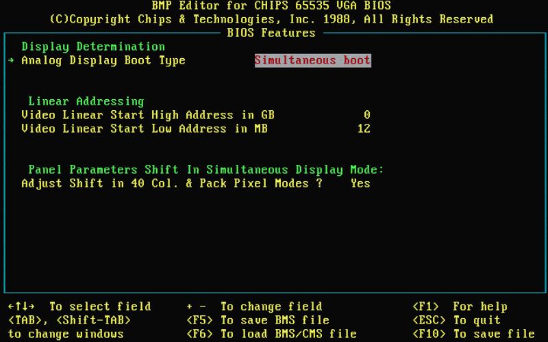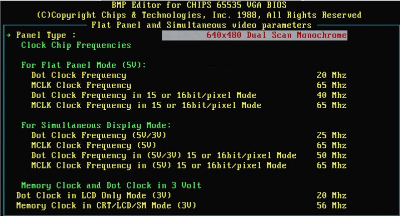 I have only identified the locations of interest for supporting the TFT display modifications. The page numbers in my table do not have a significant meaning. They are based on the page numbers within the 65535 BMP Editor, which does not recognize the BIOS on the PC110.