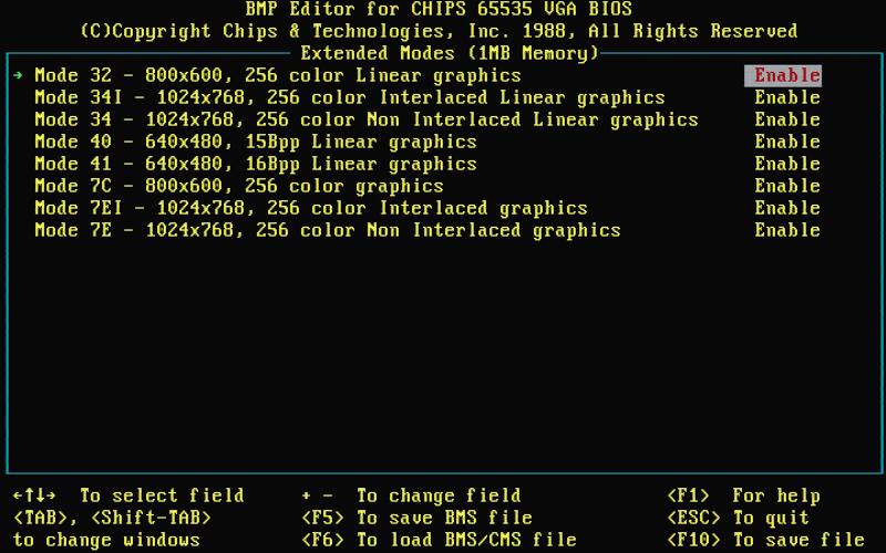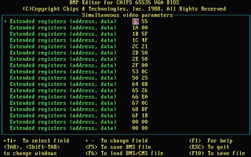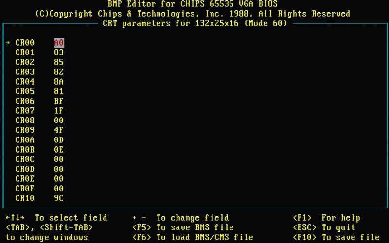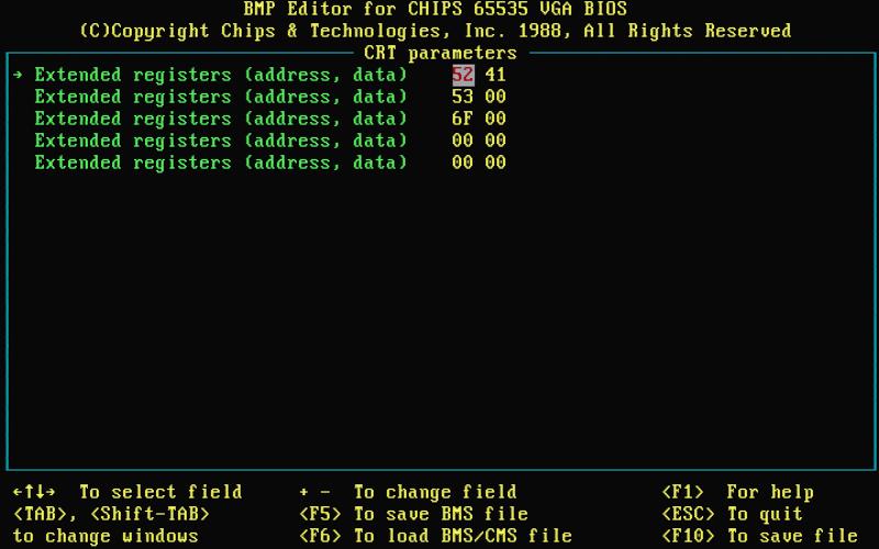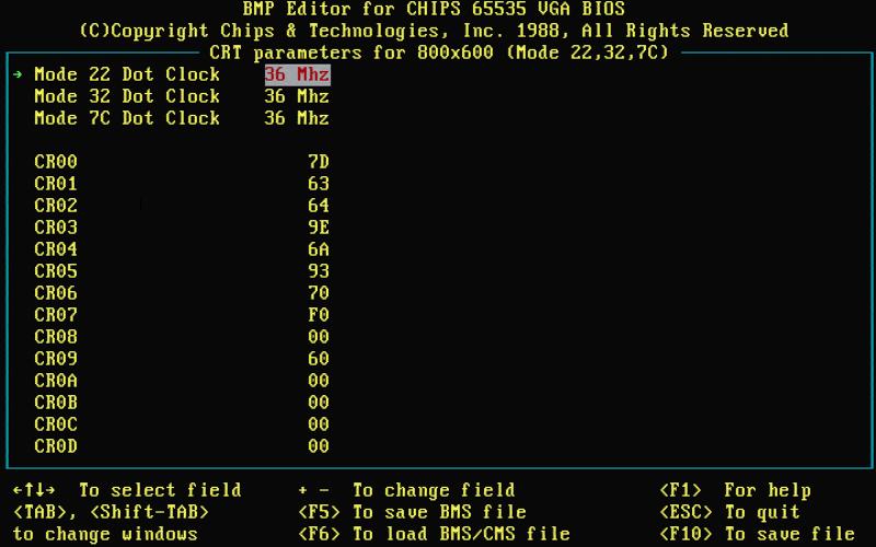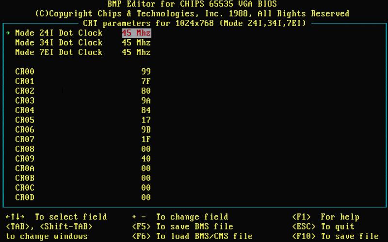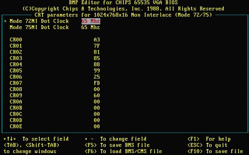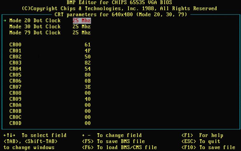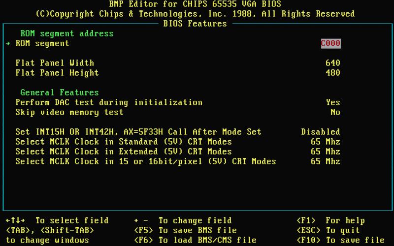 In the following data, I show the pages as seen in the C&T 65535 Bios Modification Program for a bios I pulled from a different C&T 65535 powered industrial card.