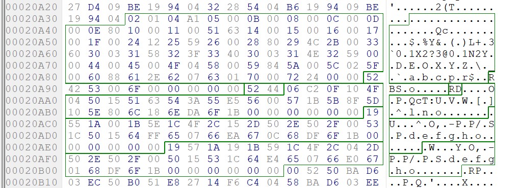 The values in the tables are as seen on a PC110 that has been patched with xpatch.exe